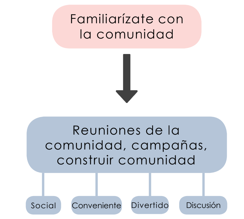 Es importante organizar reuniones en ubicaciones de la comunidad central en horarios convenientes para fomentar la asistencia de todos. Ofrecer una niñera en las actividades o paseos a las reuniones aumentará la asistencia.